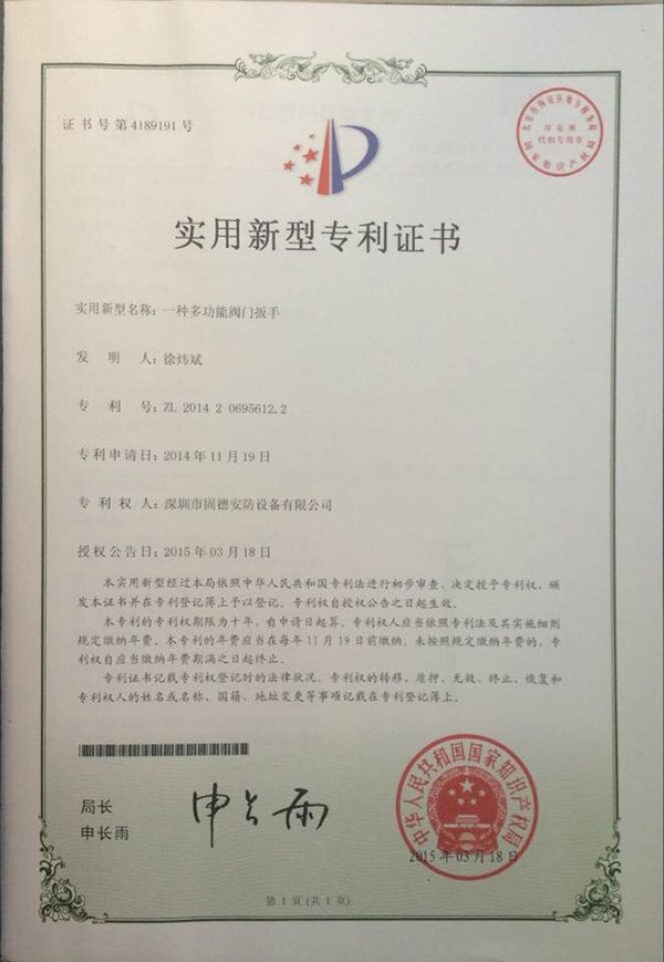 實(shí)用新型專利證書